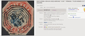 Rare world stamps philatelic material India used in Straits settlements with B172 selling for $34000.!!