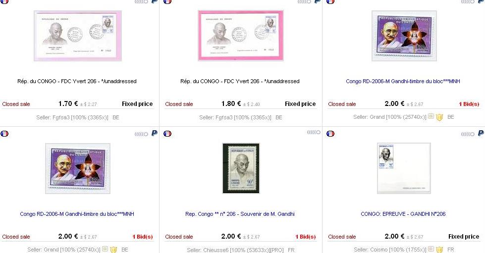 In October 2011, set of 6 stamps was sold for $3.!! Amazing price after 40+ years, which tells that Gandhi stamps are not for investment.