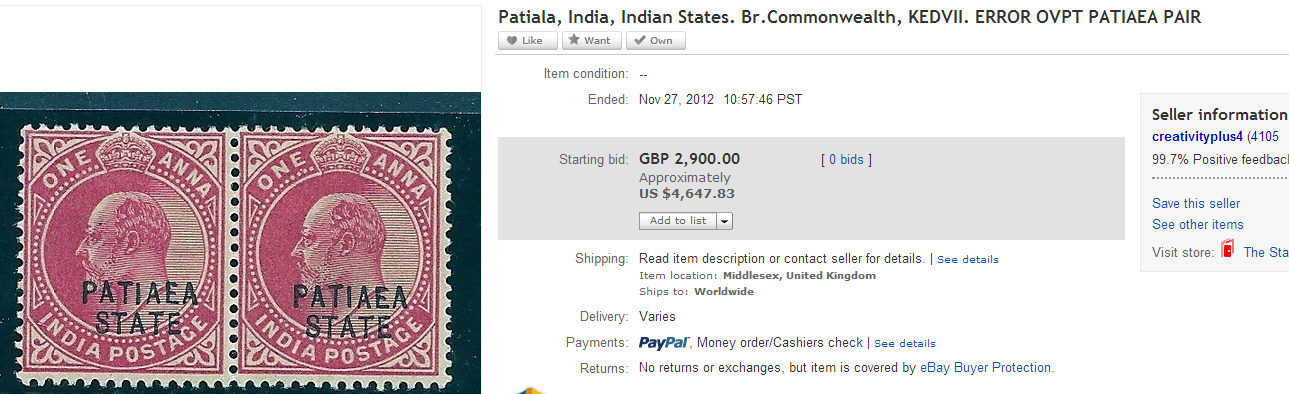 But if you just overprint with some Indian state name on it and make it an error you can ask for $4600+.!!, and hope some idiot out there will buy it.!!