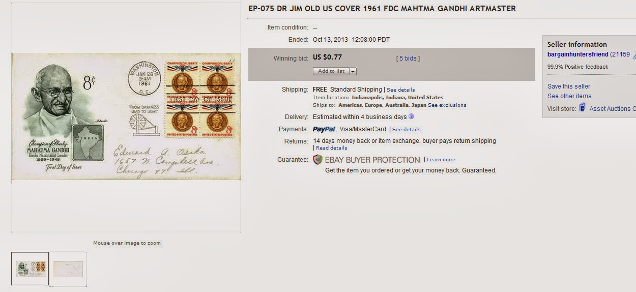 6) Maxi Card sold for $5100 with 1948 India Gandhi Stamps - False hope of Riches - Part VI?