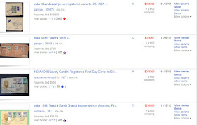 You don't have to believe that this is all correct pricing because lot of factors affect this but still you can get some idea what's going on in Gandhi stamps, who is selling, who is buying etc.