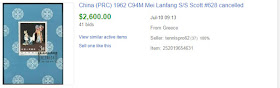 Recently I saw China PRC 1962 stamps - Mei Lanfang S/S sheet 628 sold for $18000.!!