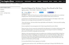 Click following link to read about Mother Teresa Signed Baseball.!! (Ofcourse FAKE).